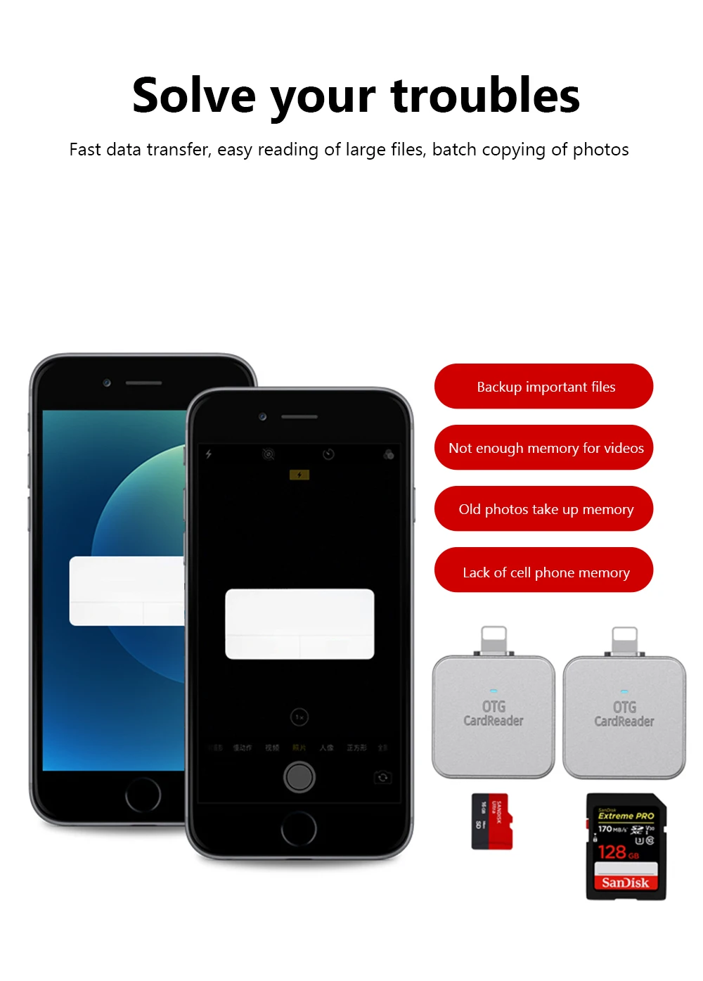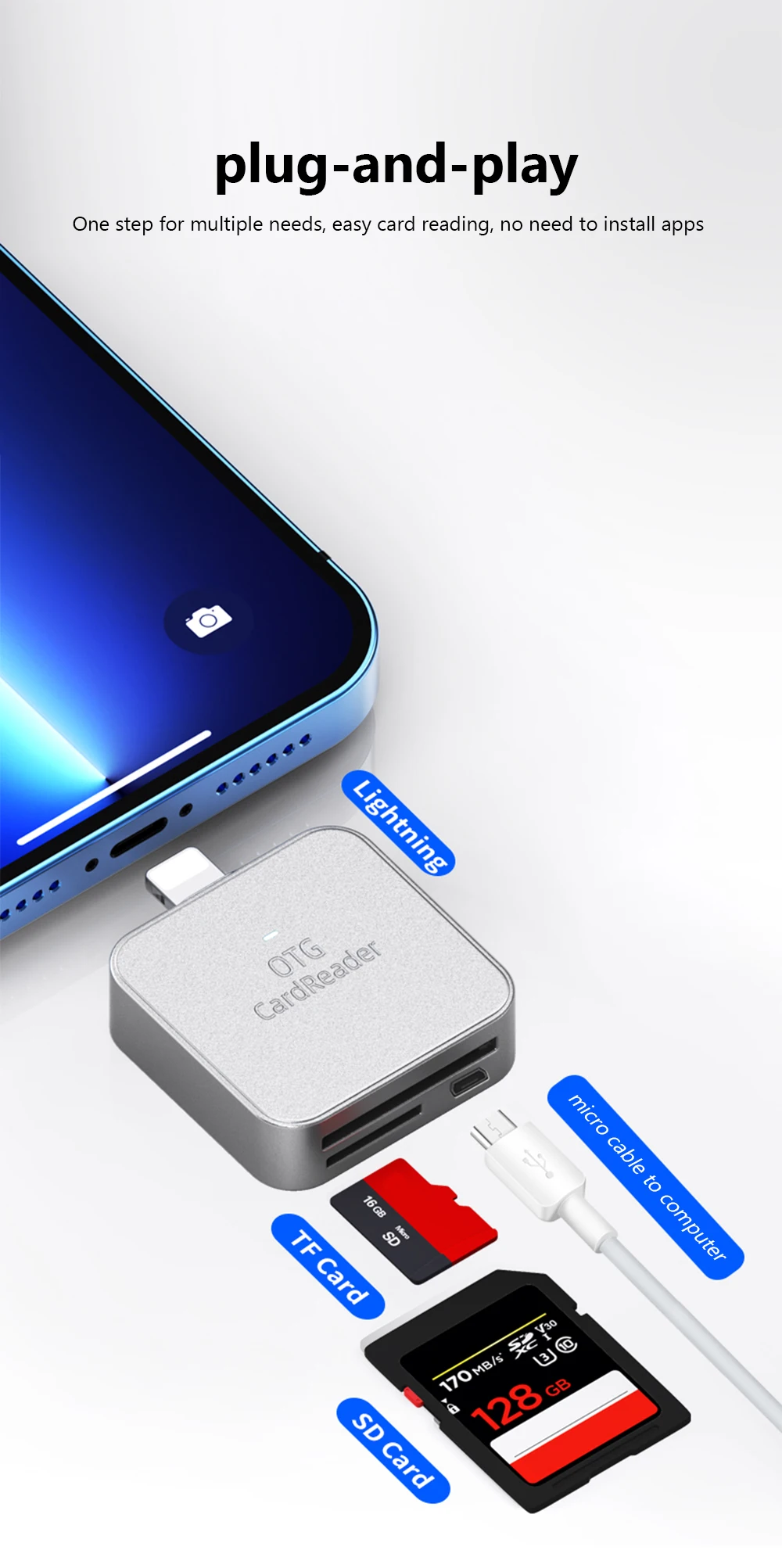 Olaf Type C/Lightning Card Reader 2 in1 SD TF Card Reader Micro External OTG Memory High Speed Card Reader For iPhone 14 13 12